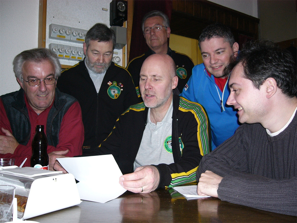 Bilder(1) Renate Kühne, Izeir Amzai und Dagmar Pfleger (v.l.n.r.) unterstützen Obmann Christian Roost (sitzend, (2)Auch die Pistolenschützen Schaffhausen Randen reisten nach Kloten